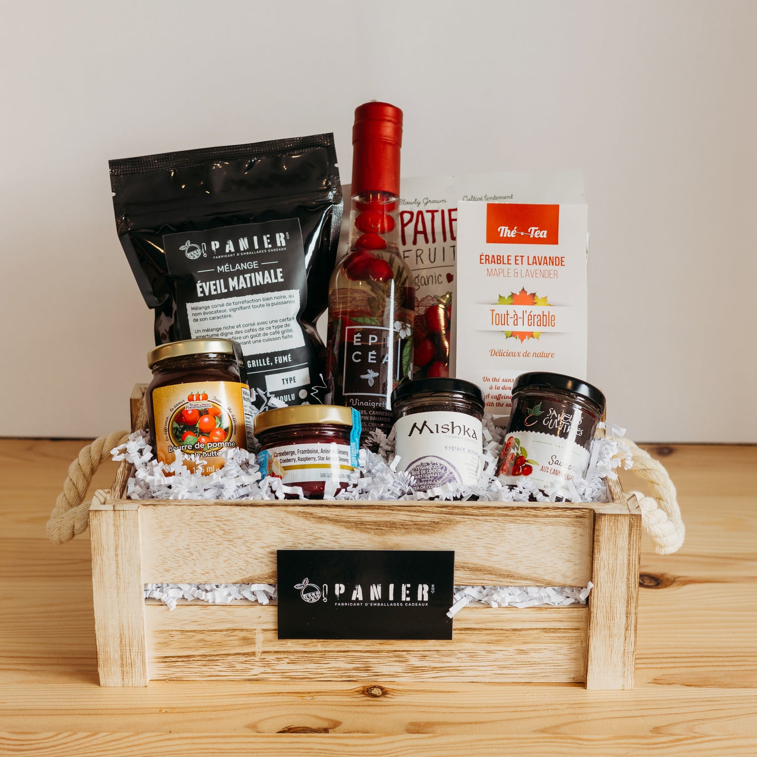 Nous nous spécialisons dans la création de paniers cadeaux mettant en vedette exclusivement vos produits locaux, tout en vous déchargeant de la gestion de l'inventaire et du personnel nécessaire à la production. Notre objectif est de maximiser la valeur ajoutée de vos produits du terroir québécois, en les transformant en cadeaux uniques et mémorables, prêts à être offerts par vos clients.