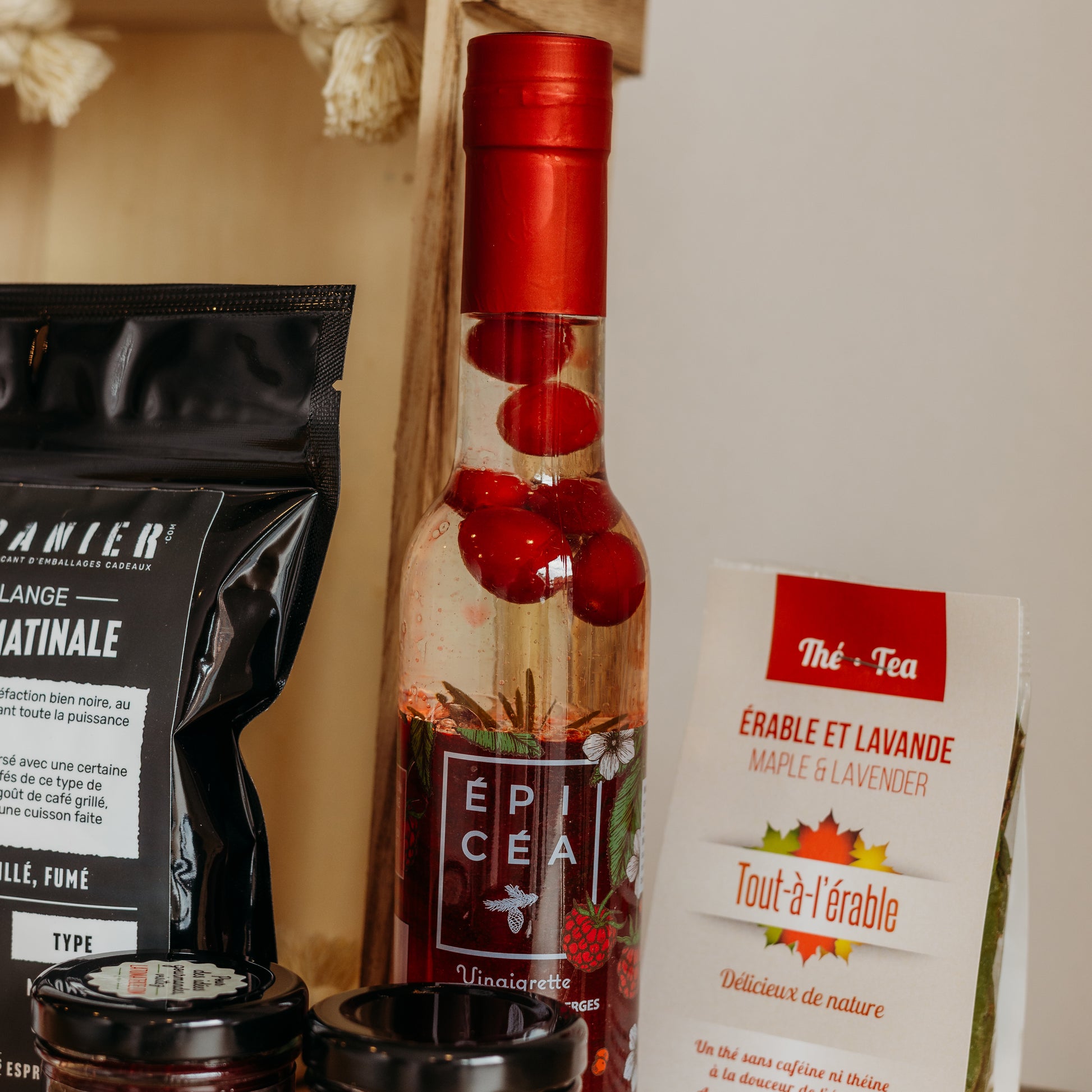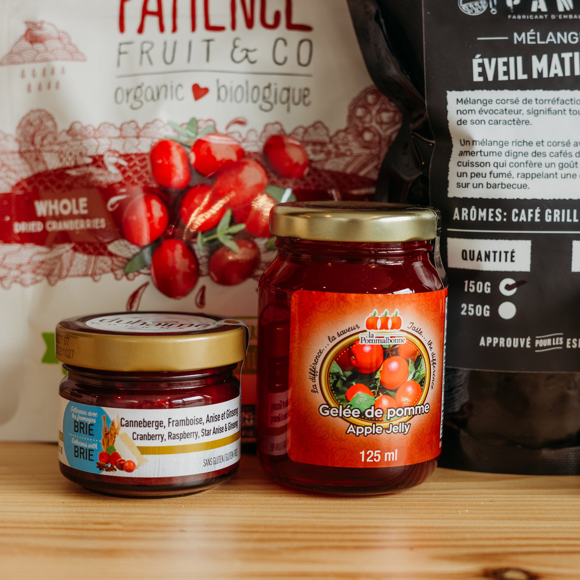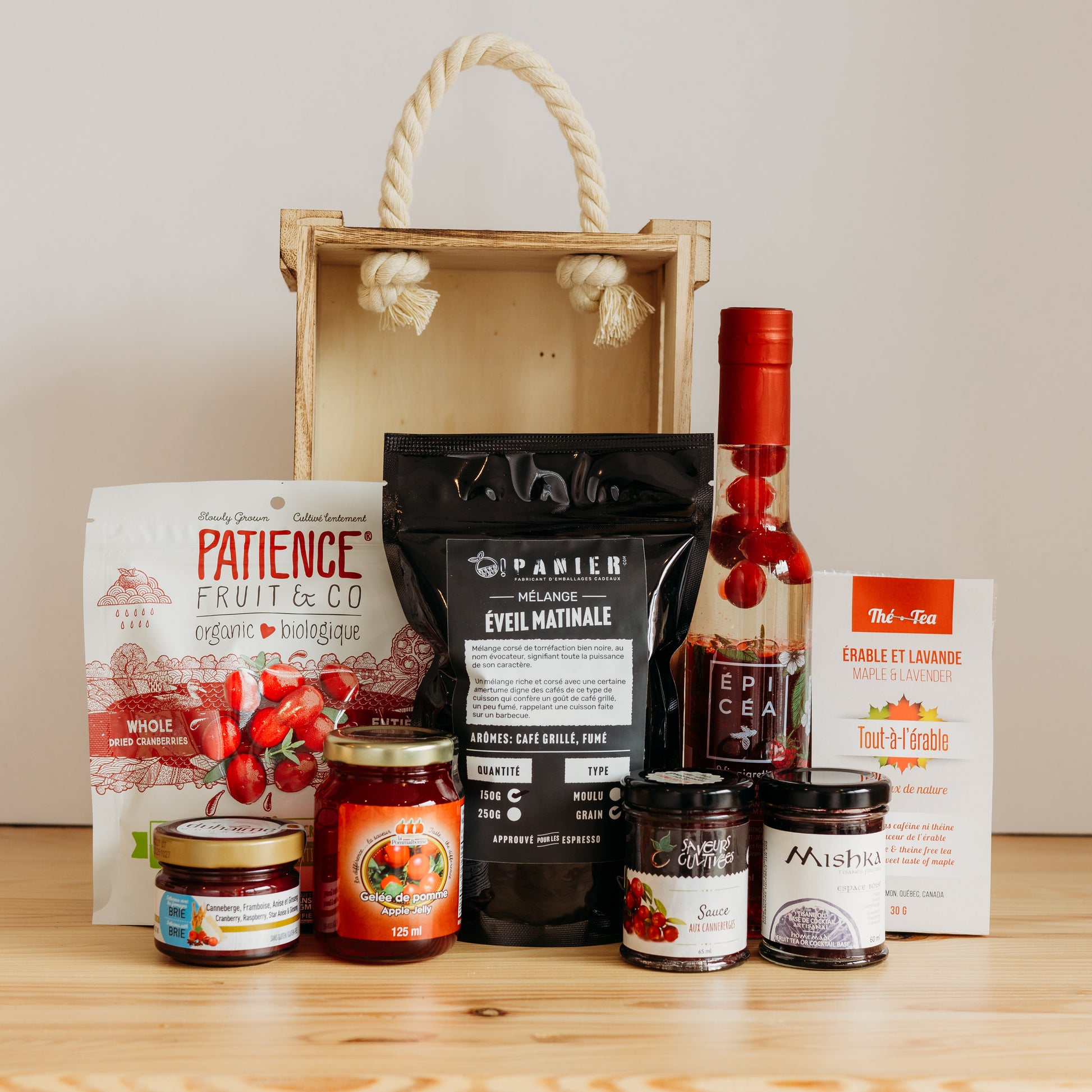 Célébrez l'automne avec le Panier O! Délice d'Automne, une sélection soigneusement composée de délices locaux. Ce panier rassemble des produits gourmands aux saveurs fruitées et réconfortantes, parfaits pour enrichir vos repas et moments de détente. Avec des touches de canneberge, d'érable et de pomme, chaque produit incarne l'essence de la saison automnale. Offrez ou savourez un cadeau qui reflète la richesse des récoltes québécoises et l'artisanat local.